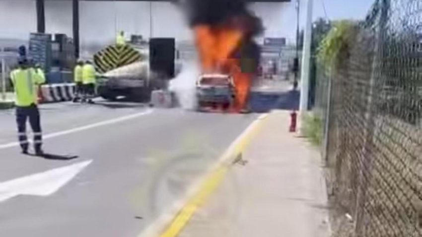El incidente ocurrió cuando el vehículo comenzó a incendiarse repentinamente al aproximarse a la caseta, lo que obligó a detener por completo la circulación vehicular durante varios minutos. Elementos de la Guardia Nacional, así como personal de seguridad de la autopista, acudieron de inmediato para acordonar la zona y evitar riesgos a otros conductores.