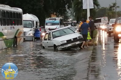 Una torrencial lluvia se precipitó en Puerto Vallarta, Jalisco, debido a exceso de basura de la zona comercial Villas Vallarta, se taparon bocas de tormenta lo que provocó que la lateral de la vialidad Medina Ascencio se inundara