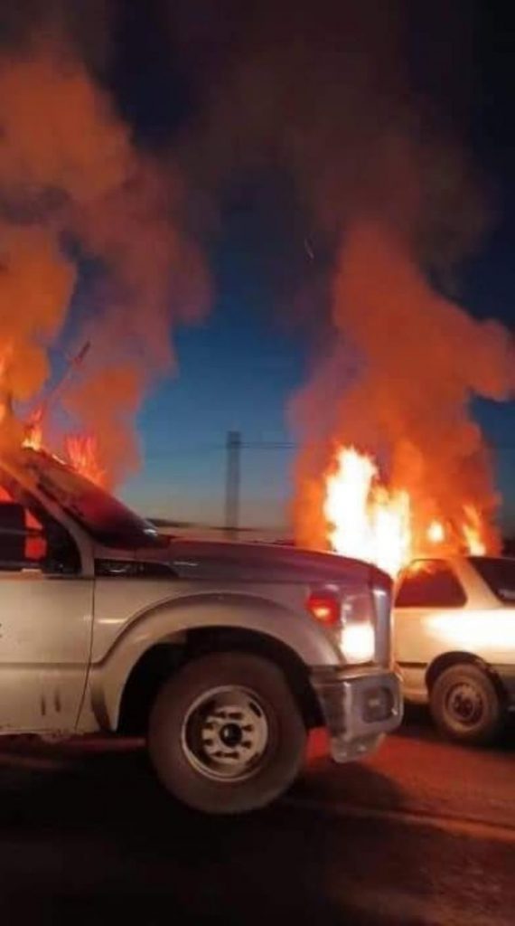 «La policía municipal de Tepatitlán de Morelos que acudió a la Delegación de Pegueros, fueron informados que varios sujetos a bordo de tres camionetas Pick Up le cerraron la circulación a un automovilista y lo despojaron de su vehículo de la marca Tsuru, modelo 1994, el que fue localizado incendiado y obstruyendo la circulación con rumbo hacia Jalostotitlán. En este mismo evento, fue localizada otra camioneta Ford tipo 350, con la cabina incendiada», señala el comunicado.