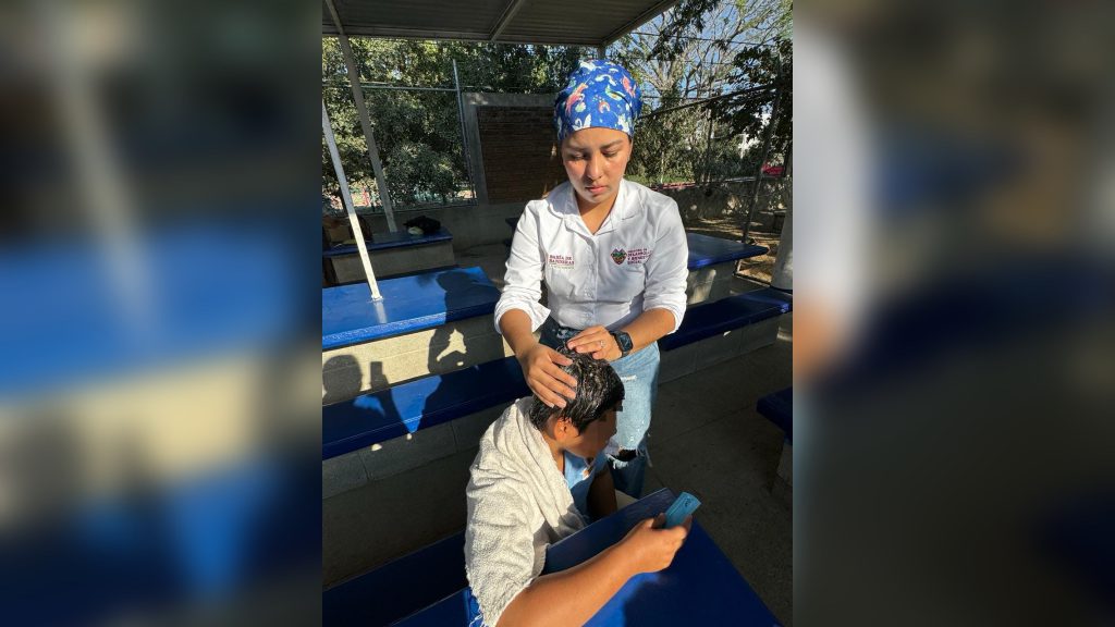 Bahía de Banderas, Nay., 25 de abril de 2024.- A través de la Coordinación de Salud del Gobierno de Bahía de Banderas, se está realizando una Jornada Contra la Pediculosis, enfermedad caracterizada por la infestación de piojos y liendres en el cuero cabelludo, con la intención de prevenir y/o erradicarlos a través de un proceso donde participan principalmente alumnos, padres de familia, maestros y personal de la Coordinación de Salud.