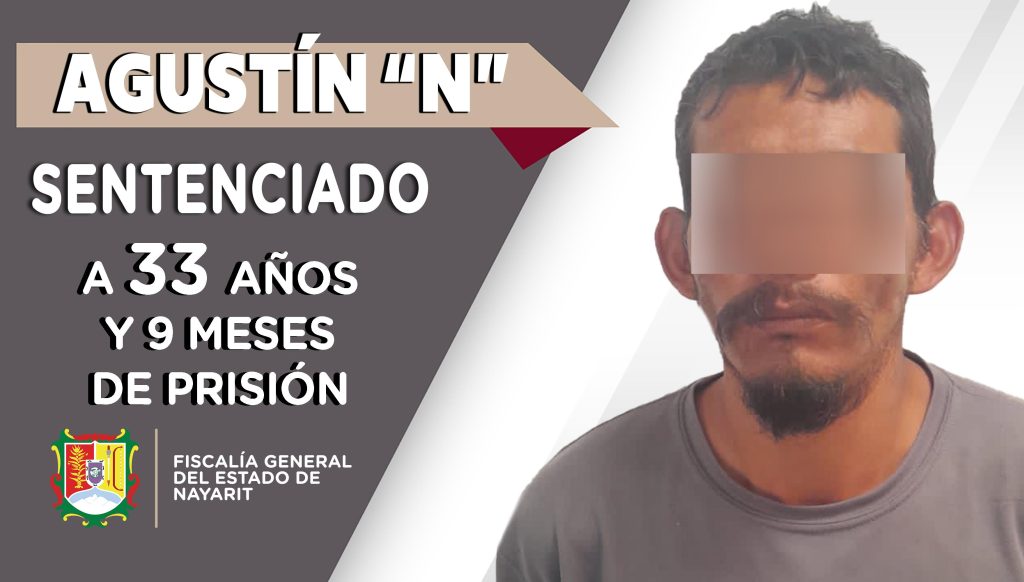 La Fiscalía General del estado de Nayarit informó este viernes, que logró una sentencia condenatoria de 33 años y 9 meses de prisión contra Agustín “N”, por el delito de violación equiparada agravada, cometido en contra de una adolescente cuya identidad se mantiene bajo reserva para proteger su integridad y derechos.