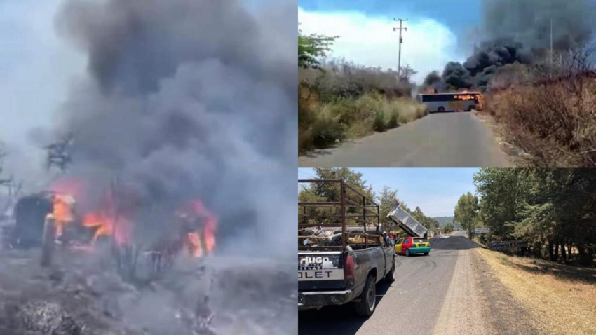 El último punto fue en el municipio de Concepción de Buenos Aires, en la carretera que conecta Mazamitla con Teocuitatlán de Corona, en donde fue incendiado un camión de pasajeros.