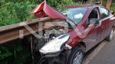 Hasta ese sitio arribaron los elementos de la Guardia Nacional (División Caminos) y personal de Protección Ciudadana y Bomberos de Nayarit a bordo de sus unidades de auxilio y rescate, quienes se percataron de que ahí se encuentra un vehículo de la marca Nissan, tipo Versa, de color tinto, con placas RXS-022-A del Estado de Nuevo Leon, el cual terminó impactándose contra la barrera de contención.