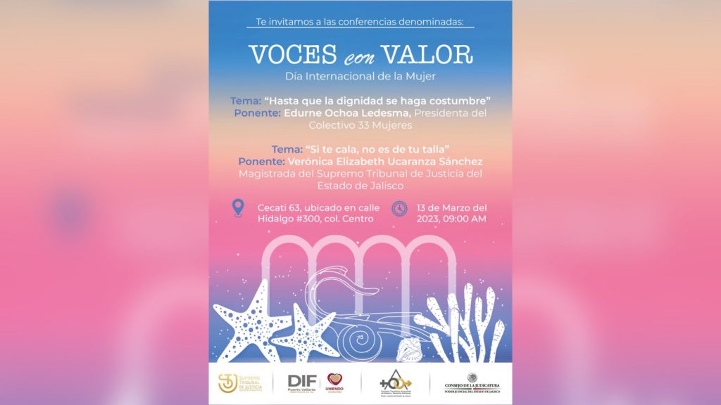 Como parte de las actividades conmemorativas en el marco del Día Internacional de la Mujer, el Sistema DIF de Puerto Vallarta que preside María de Jesús López Delgado, extiende la invitación a las mujeres y público en general a asistir al ciclo de conferencias denominado “Voces con Valor”.