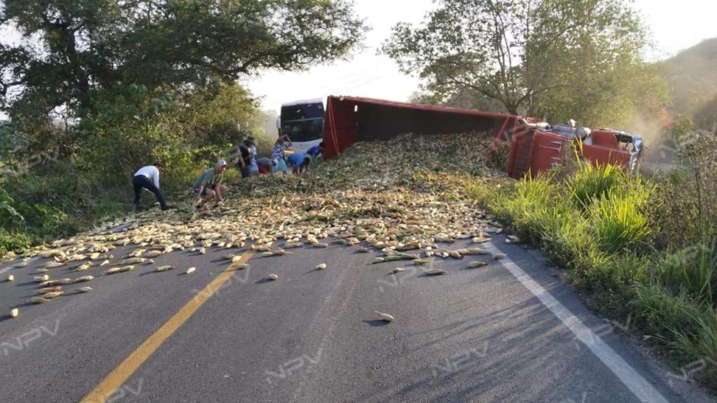 La tarde de este viernes se registró el cierre total a la circulación sobre la Carretera Federal 200, en el tramo comprendido entre Lo de Marcos y El Monteón, debido a la volcadura de un camión tipo torton cargado con elotes, informó de manera preliminar Protección Civil de Bahía de Banderas.