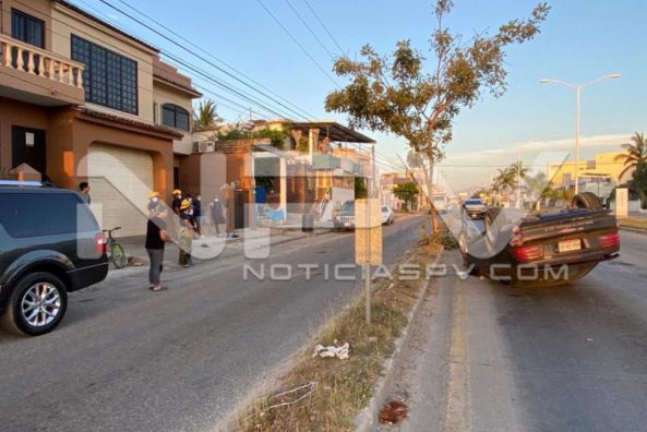 Se registro la volcadura de un auto en el poblado de Bucerias, donde resultó lesionado el conductor de 19 años, quien fue llevado a recibir atención médica a un hospital.