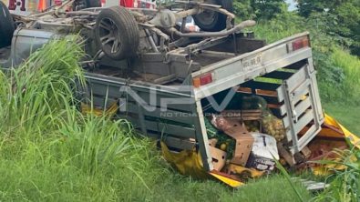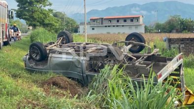 Empleado de una frutería volcó la camioneta cargada de mercancía al quedarse dormido al volante, quedando con las llantas hacia arriba pero afortunadamente resultó ileso, aunque sí hubo pérdidas materiales que tendrá que pagar debido a su imprudencia que casi le cuesta la vida.