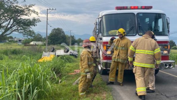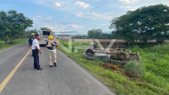 En el lugar los Paramédicos a cargo de Adriana Trejo, revisaron a un masculino que viajaba momentos antes en una camioneta Nissan, Estaquitas, con placas JU-89-108 de Jalisco, propiedad de una frutería de la región, quien dijo que al ir circulando por la carretera se quedó dormido y terminó volcándose luego de salirse de la carpeta asfáltica.