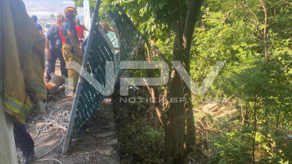 Inmediatamente los Bomberos realizaron maniobras y a rapel bajaron a la cuneta y de ahí rescataron a los tripulantes de la camioneta que estaba con las llantas totalmente hacia arriba y donde gracias a la estructura tubular, las personas no murieron aplastadas, quienes milagrosamente resultaron ilesos, solo con unos leves raspones y el susto de su vida que sacaron al terminar volcados.