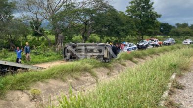 Vecinos de El Colomo sufrieron aparatosa volcadura en la camioneta en la que circulaban por la carretera del Camino Viejo en el tramo de Valle de Banderas a Bucerias, donde los daños materiales fueron cuantiosos, pero afortunadamente sus tripulantes resultaron solo con lesiones menores que no ameritaban traslado al hospital, donde tomaron nota los agentes de Tránsito de Bahía de Banderas.