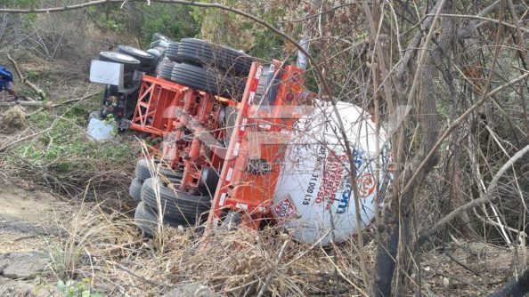 Esta mañana reportaron la volcadura de una pipa que cayó a un barranco de al menos 5 metros donde al principio decían que había lesionados pero al arribar las autoridades al lugar informaron que sólo eran daños materiales.