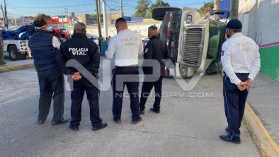 Al lugar arribaron los agentes de Tránsito Municipal a bordo de sus unidades al mando del comandante en turno Abigael Meza y del sub director operativo Ricardo Parra, quienes dan a conocer que efectivamente se trata de un camión concretero conocido también como revolvedora, que esta volcado sobre su costado izquierdo, mismo que causó daños a una finca donde afortunadamente no se apreciaban lesionados, solo daños materiales.