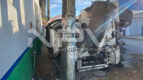 Informan que se trata de un vehículo de la marca International con placas JW-43-298 del estado de Jalisco, propiedad de «Bisonte concretos» que era conducido por un masculino de nombre Alejandro Carrillo, trabajador de dicha concretera, quien perdió el control del volante y terminó volcándose, al parecer por una falla mecánica del «Trompo», donde afortunadamente no reportaron lesionados, aunque sí hubo cuantiosos daños materiales.