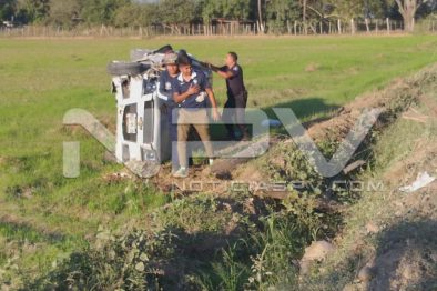Circulaba en exceso de velocidad por una de las brechas que conduce a El Colomo y en su camino chocó contra una motocicleta luego terminó volcado en un potrero