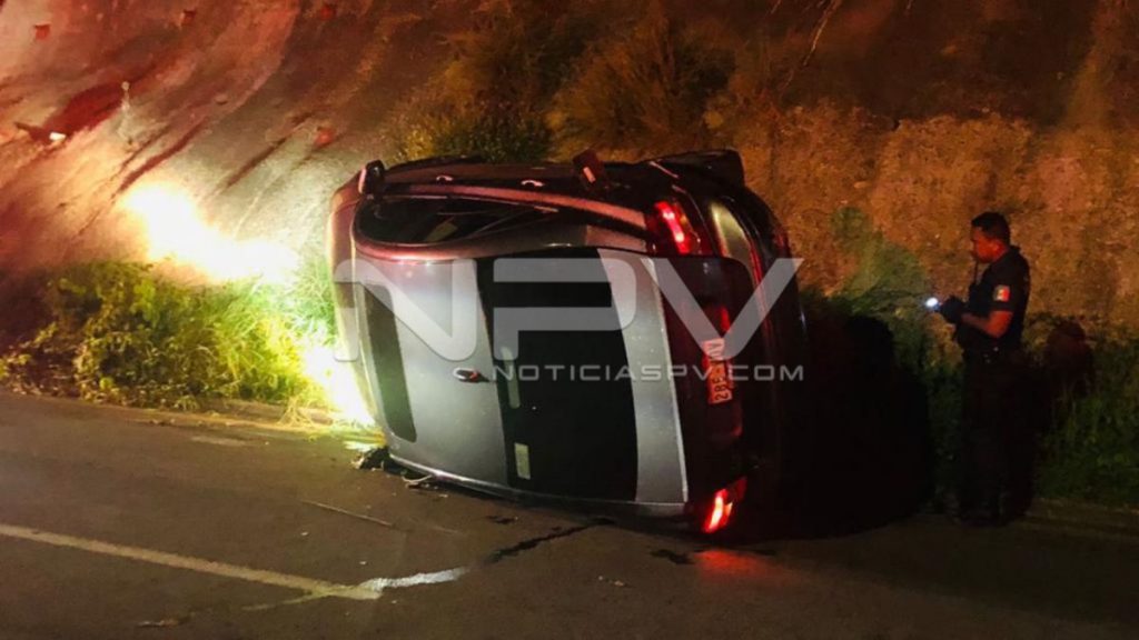 Las autoridades municipales de Bahía de Banderas tomaron conocimiento acerca de aparatoso accidente que se registró frente a plaza Lago Real, en donde un vehículo marca Volvo se quedó sin control y terminó volcado.