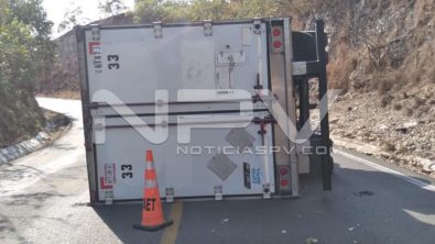 Fue en el kilómetro 59+100 donde quedó volcado el pesado camión que iba cargado con al menos 19 toneladas de pollo fresco, el cual se dirigía a Puerto Vallarta