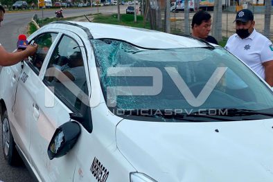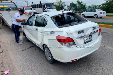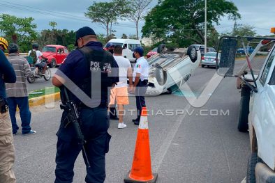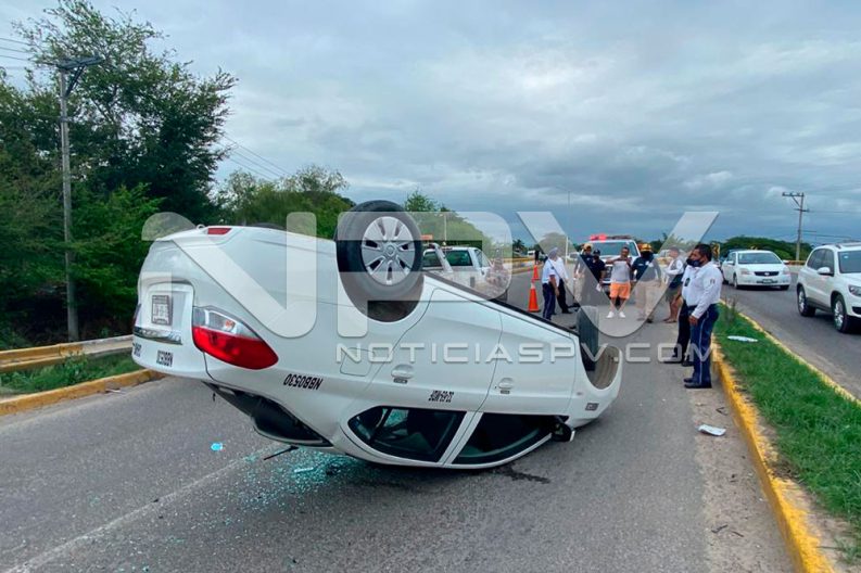 Al lugar llegó el personal de Protección Civil y los oficiales de Tránsito Municipal junto con agentes de la Policía Estatal Preventiva, quienes informaron que se trata de la volcadura de un vehículo Dodge, de color blanco con placas de circulación del transporte público y con números y razón social de taxi, sin especificar de cual sitio.