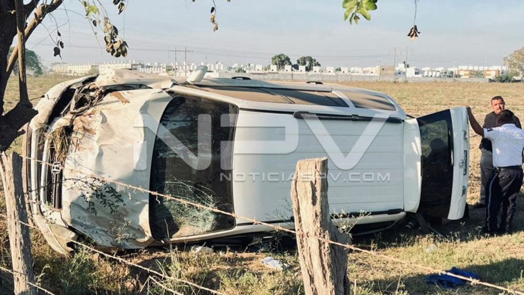 Las autoridades municipales informaron que se trata de una camioneta Honda CR-V en color blanco con placas del estado de Nayarit, la cual se encontraba volcada dentro de un potrero y presentaba daños en la parte delantera.
