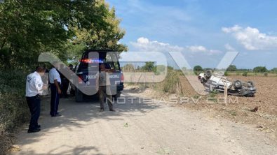 Fue por la brecha que conduce de San Vicente a Jarretaderas donde terminó volcada la unidad policíaca dentro de un potrero luego de que su conductor perdió el control