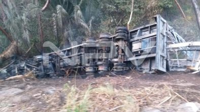 Los hechos ocurrieron a las 18:25 horas de este martes 11 de mayo del 2021 a la altura del kilómetro 109, de la carretera federal 200, Tepic-Puerto Vallarta, donde reportaron al personal que atienden las llamadas del 911 en el Módulo de Atención Ciudadana de C-4, sobre un trailer volcado en un barranco.