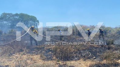 Elementos de Bomberos llegaron a un predio aledaño al fraccionamiento donde el fuego ya empezaba extenderse a las viviendas mismo que fue combatido en su totalidad