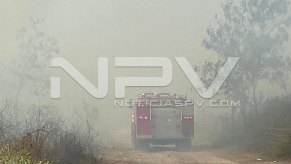 Enorme incendio que fue provocado en un predio al parecer propiedad de conocido empresario hotelero, que está aledaño a la carretera que conduce a San Juan de Abajo, hasta donde arribaron los Bomberos Municipales de Bahía de Banderas, para atender el reporte y apagar el fuego que arrasaba con la maleza y unas palmas secas que llevan a tirar en camionetas de carga desde Nuevo Vallarta, hasta ese lugar para evitar pagar en el relleno sanitario.