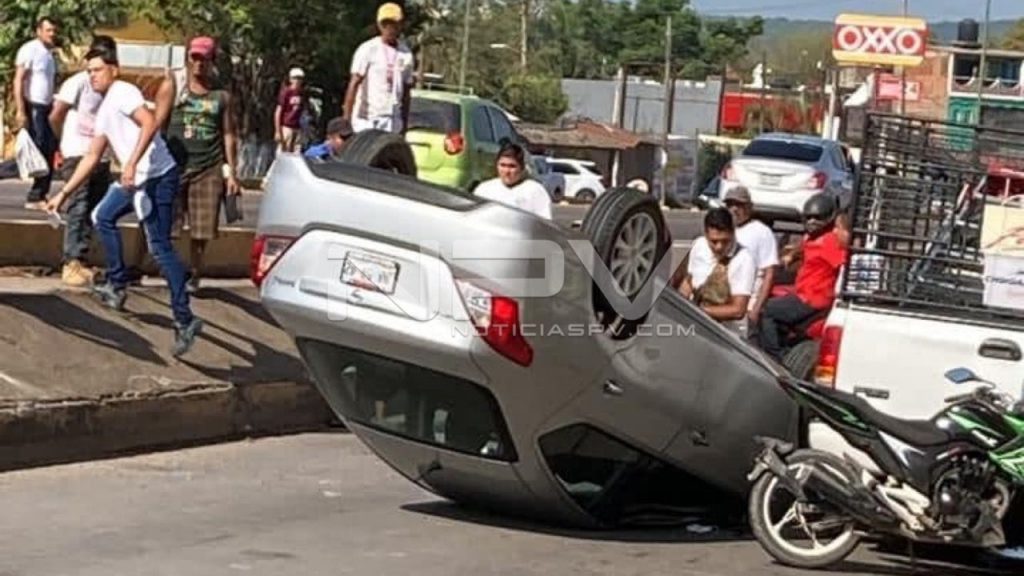La mañana de este viernes se registró fuerte accidente sobre el boulevard Adolfo López Mateos, siendo la avenida principal del poblado de Las Varas, en el municipio de Compostela, en donde un auto compacto cayó de los carriles centrales a los laterales, quedando volcado y bloqueando la arteria lateral que lleva de norte a sur.