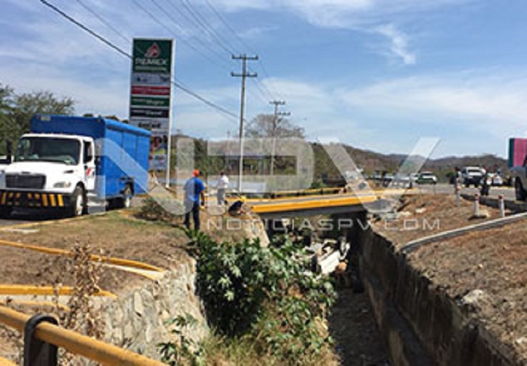 Los hechos se registraron este viernes, sobre la carretera de ingreso a La Cruz de Huanacaxtle, a la altura de la gasolinera que se ubica apenas a unos metros del crucero, en donde los elementos de los servicios de emergencias fueron alertados en torno a un accidente, siendo informados de que una camioneta había caído al canal y que al interior había personas pidiendo auxilio.