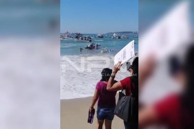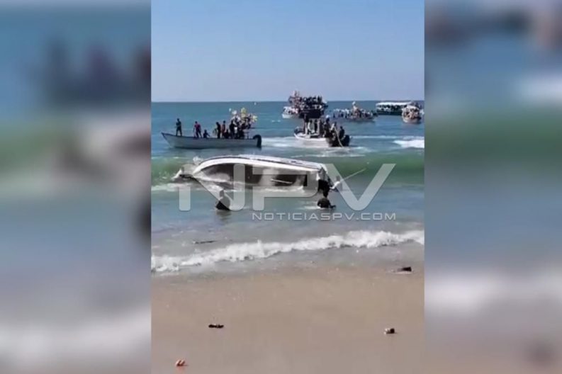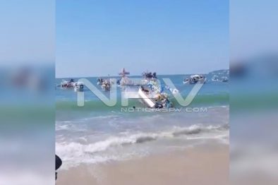 Fue la tarde este viernes justo cuando se celebraba la peregrinación marítima en las playas de Bucerías procedente de la Cruz de Huanacaxtle, donde se registró un percance de una embarcación que volcó ante la mirada de los asistentes a este evento religioso.