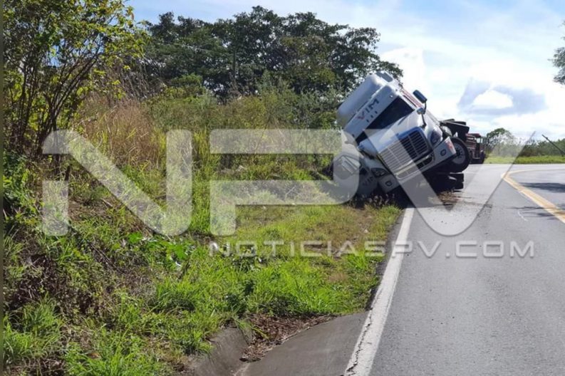 Vuelca tráiler cargado con gas y cierra la carretera federal 200