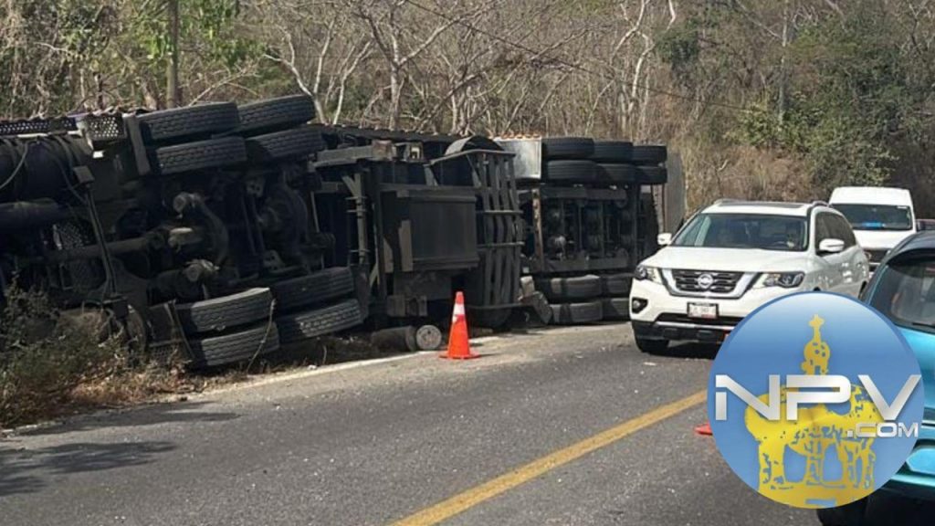 La mañana de este martes, un camión de carga volcó sobre su costado derecho en la carretera federal 200, a la altura de la curva de Las Cinco Cruces, lo que provocó la movilización de cuerpos de emergencia y generó afectaciones al tráfico vehicular.