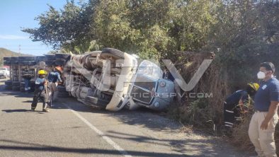 Iba cargado de grava y pertenece a la empresa ARMAPET *La persona que la conducía salió lesionado y fue atendido por el personal de Protección Civil de Bahía de Banderas