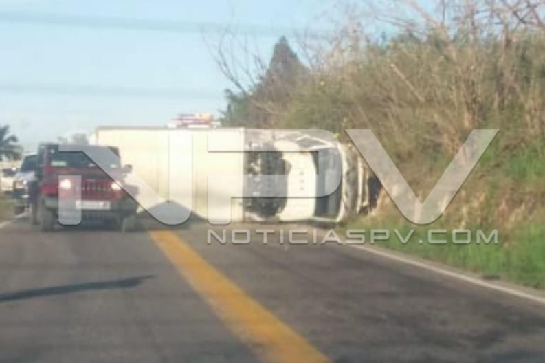 Al llegar al lugar se dieron cuenta de que se trataba de un vehículo en color blanco con caja Thermo King, el cual estaba volcado sobre su costado derecho, obstruyendo uno de los carriles de la carretera federal 200.
