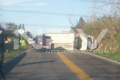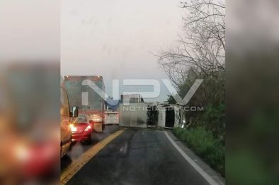Aparatoso accidente se registró la mañana de este viernes sobre la carretera federal 200, entre los poblados de Las Varas y Las Piedras, en donde se registró la volcadura de un camión de carga, mismo que afectó parte de la carretera en mención.