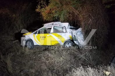 Al arribar los elementos de los servicios de emergencias al lugar, se percatan del accidente y luego informan a su base operativa que se trata de la volcadura de un taxi, Nissan, Tiida, blanco y amarillo con el número económico 1223, del sitio 09, propiedad al parecer de José Justo Medina, que conducía un joven de 22 años de edad, de nombre Fabián Alejandro Galván, vecino de la calle Sierra Aconcagua, en la colonia Olímpica.