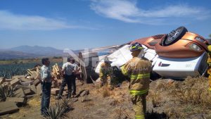 Auto termina destrozado y volcado en la autopista Las Varas–Puerto Vallarta