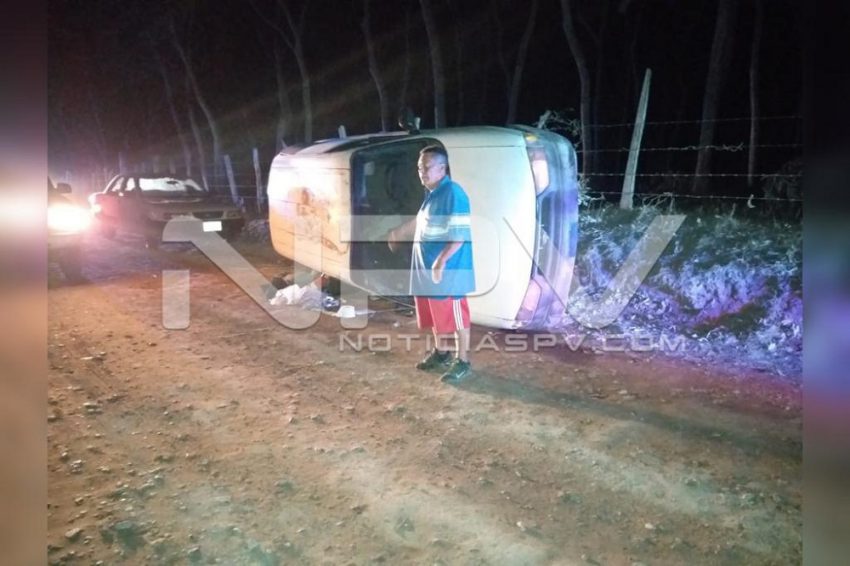 La noche de este domingo, se registró aparatosa volcadura sobre el camino de terracería que comunica a Puerto Vallarta y Bahía de Banderas, conocido como “El Paso del Guayabo”.