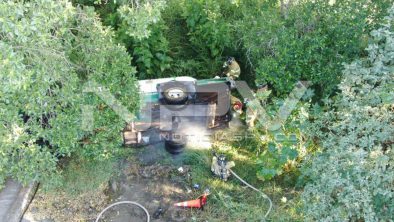 Dos personas resultaron lesionadas y de momento siguen trabajando en el lugar ya que hay fuga en el contenedor