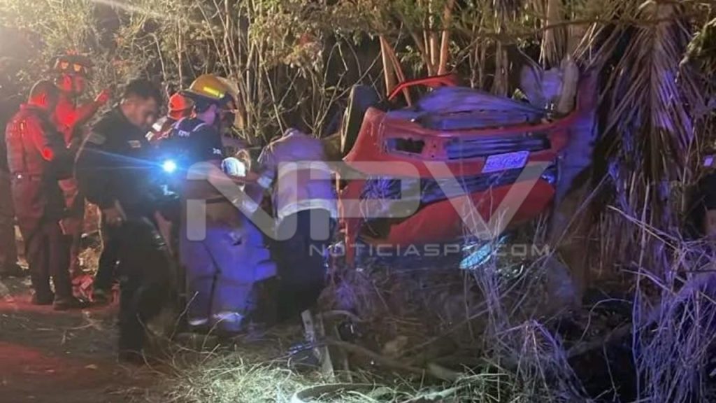Un fuerte accidente automovilístico se registró la noche de este viernes sobre la carretera La Cruz de Huanacaxtle – Punta de Mita, dejando como saldo a dos personas lesionadas, una de ellas atrapada entre los fierros retorcidos del vehículo.