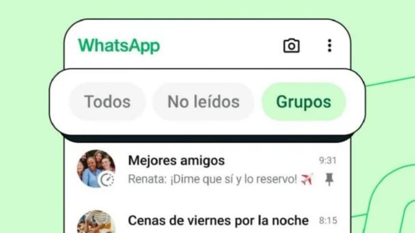 Se trata de los filtros de WhatsApp, que se distinguen en tres nuevas pestañas -‘Todos’, ‘No leídos’ y ‘Grupos’- y que se colocan en la parte superior de la lista de chats, para que se puedan seleccionar con un solo toque en la pantalla.