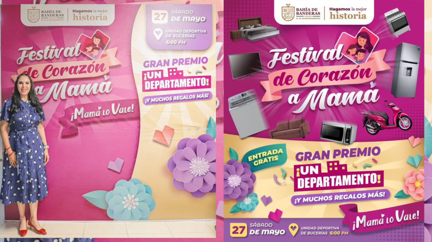 Bahía de Banderas Nay, 23 de mayo de 2023.- Festival de Corazón a Mamá, es el nombre que lleva la celebración del Día de las Madres que el XI Ayuntamiento realizará a las progenitoras de Bahía de Banderas, así lo anunció la mañana de este martes la presidenta municipal Mirtha Villalvazo.