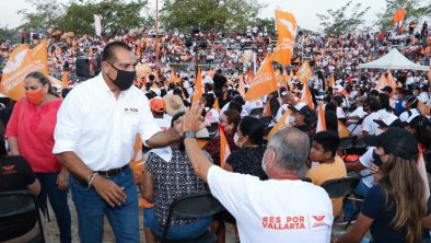 Al grito de guerra “¡Ya estamos listos, vamos por el triunfo este 6 de junio!”, el candidato a la diputación local del Distrito 05, Arturo Dávalos Peña, arengó a cerca de 7 mil elementos que conforman la estructura de Movimiento Ciudadano en Puerto Vallarta, quienes se dieron cita este miércoles en el lienzo charro Miguel “Prieto” Ibarría: “¡Vamos a meter a las urnas 54 mil votos, vamos por ellos!”.