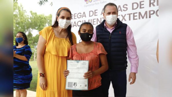 Lo anterior, mediante la campaña de Registros Extemporáneos que promueve el Sistema DIF en coordinación con el Registro Civil,  «gracias a los padres de familia que han registrado a sus hijos, gracias también a los adultos que hoy cuentan con su acta de nacimiento a través de esta campaña», señaló la titular del DIF y celebró el trabajo coordinado entre las dos dependencias, «nos da una gran satisfacción trabajar para que los ciudadanos tengan una identidad y hagan efectivos sus derechos».